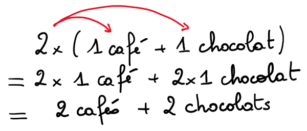 Le "2 fois" a été distribué dans la parenthèse. La multiplication a été distribuée à l'addition.
